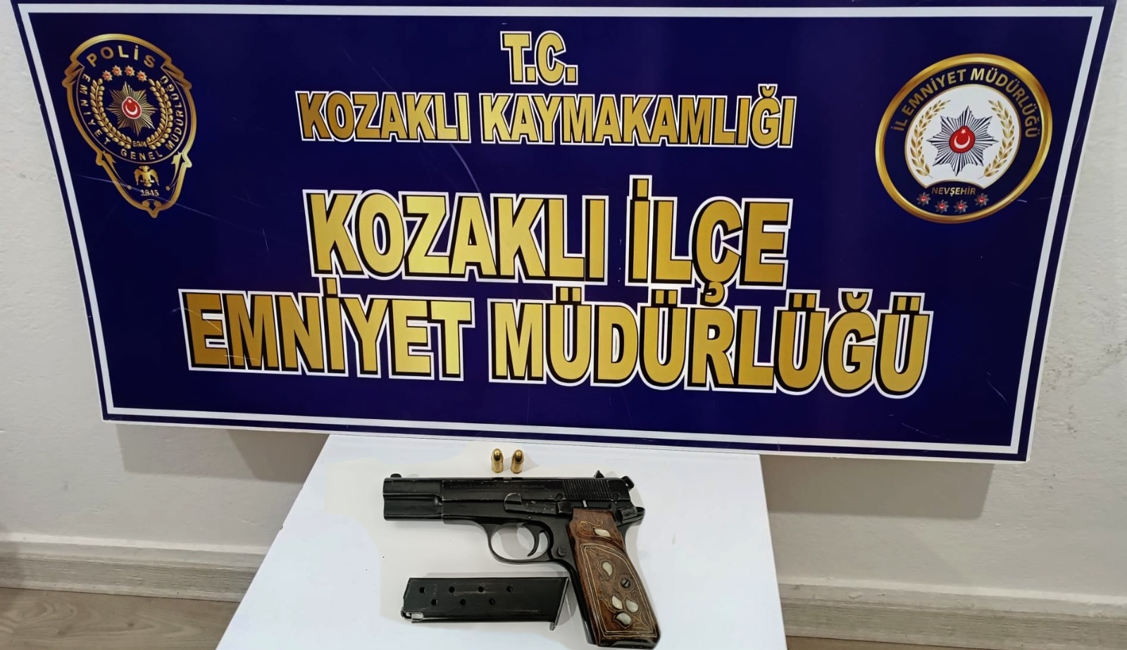 Kozaklı İlçe Emniyet Müdürlüğü ekiplerinin yapmış oldukları uygulama esnasında durdurulan şüpheli bir araç içerisinde yapılan kontrollerde, 1 ruhsatsız tabanca ele geçirildi. Tabancaya ait 2 adet fişek ele geçirilirken şüpheli şahıs hakkında gerekli adli ve idari işlemlere başladı.
