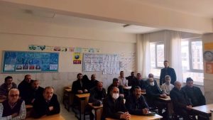 Kozaklı Halk Eğitim Merkezi Müdürü Ali Osman Kabukçuoğlu”nun konuşmasının ardından, eğitim veren Müdür Yardımcısı Duran Kuyucu, Milli Eğitim Bakanlığı tarafından yürütülen Aile Okulu Projesi’nin hem ailelere hem de muhtarlara yönelik çalışmalar düzenlediğini belirterek; muhtarların, ailelerle sıkı bir iletişim halinde olduğunu, bu eğitim sayesinde ailelerle ve gençlerle daha doğru iletişim kurup, her zorlukta onların yanlarında olacaklarını ifade etti.