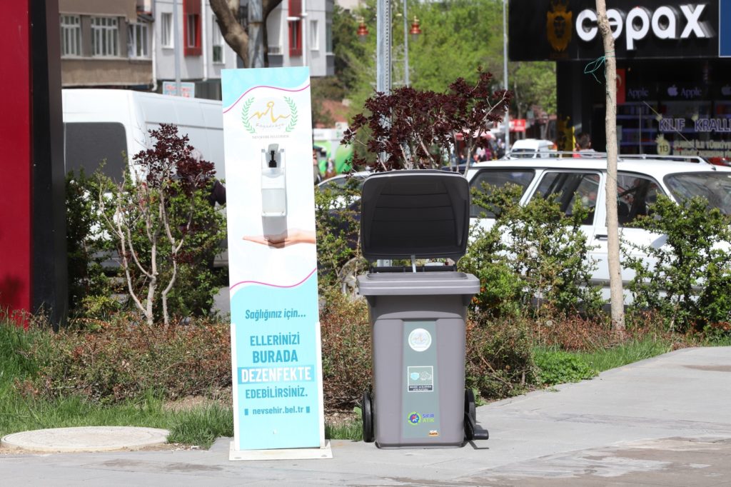 Koronavirüs salgınının ardından her türlü önlemi en üst seviyede tutmaya devam eden Nevşehir Belediyesi, salgınla birlikte kullanımı artan maske ve eldivenlerin insan sağlığına zarar vermeden bertaraf edilmesi için halkın yoğun olarak kullandığı alanlara tıbbi atık konteynerleri yerleştirdi.