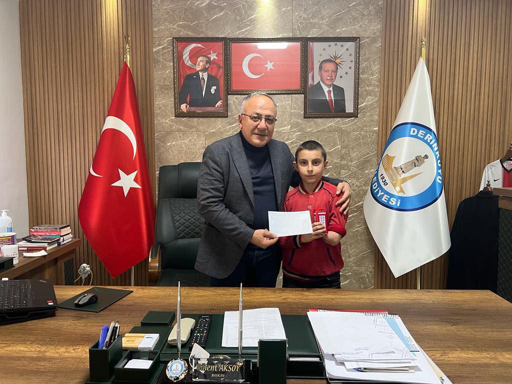 Deprem bölgesindeki akranlarına destek olmak için kumbarasını alıp Derinkuyu belediyesine gelen Muhammet Bayramoğlu, kumbara içerisinden çıkan 130 TL’sini AFAD’a bağışladı.