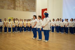 KÜN Sağlık Bilimleri Yüksekokulu Ebelik ve Hemşirelik bölümü öğrencileri, düzenlenen törenle üniformalarını giyerek meslek yolculuklarında ilk adımlarını attılar.