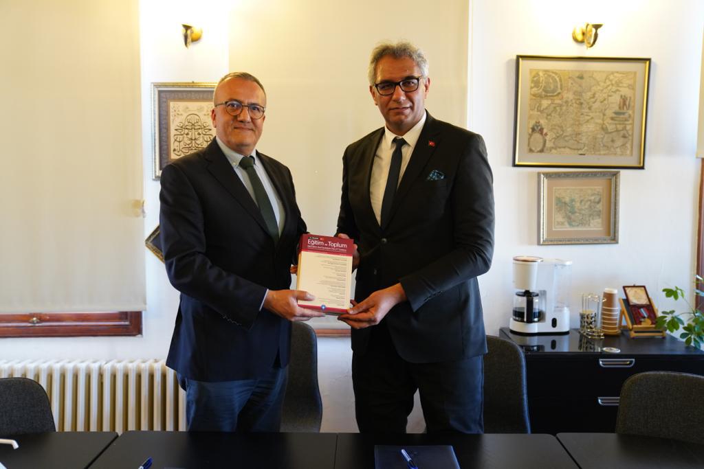 Başkan Urgenç; Rektör Prof. Dr. Hasan Ali Karasar’a Türk Eğitim Sen’in yayını hedef olarak belirlemiş olduğu akademik alanda bilimsel hayata, akademisyenlere ve eğitim çalışanlarına ürettikleri bilimsel değerleri hedef kitlelerine ulaştırarak; ulusal ve uluslararası çalışmaların gerek ülkemizde gerek dünya da amacına ulaşması için kurulmuş olan 21. Yüzyılda Eğitim ve Toplum Eğitim Bilimleri ve Sosyal araştırmalar Dergisinin son yayını olan 33. Sayısını takdim etti.