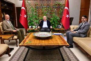 Kapadokya Üniversitesi (KÜN) Rektörü Prof. Dr. Hasan Ali Karasar ile Ürgüp Kaymakamı Ömer Coşkun, Nevşehir Valisi Ali Fidan’ı makamında ziyaret etti.