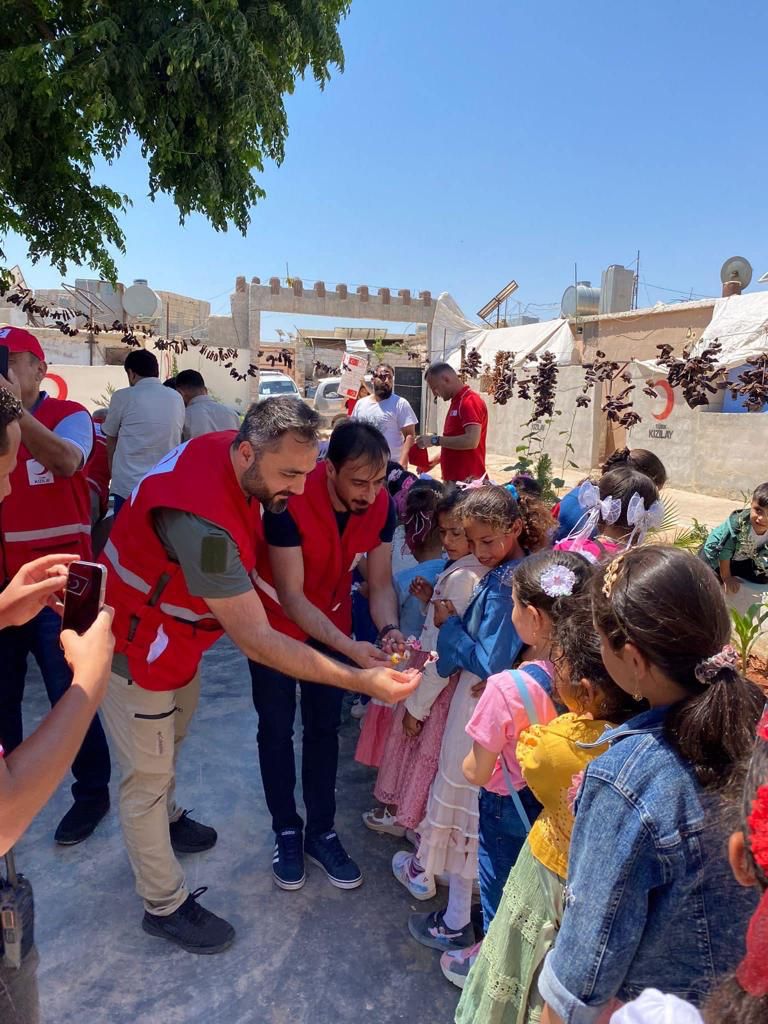 Kızılay Nevşehir Şubesinden katılım sağlayan Başkan Yardımcısı Orhan US kesimlerin gerçekleştirilmesinin ardından Suriyede inşa edilen 12 yetimhaneyi ziyaret edip bayram hediyeleri verdi.