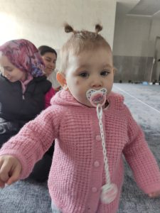 Kurs çalışmaları neticesinde ilk ürünleri olan kazaklarını depremzede ailenin çocuğuna giydirerek boş zamanları değerlendirme sevincini yaşadılar.