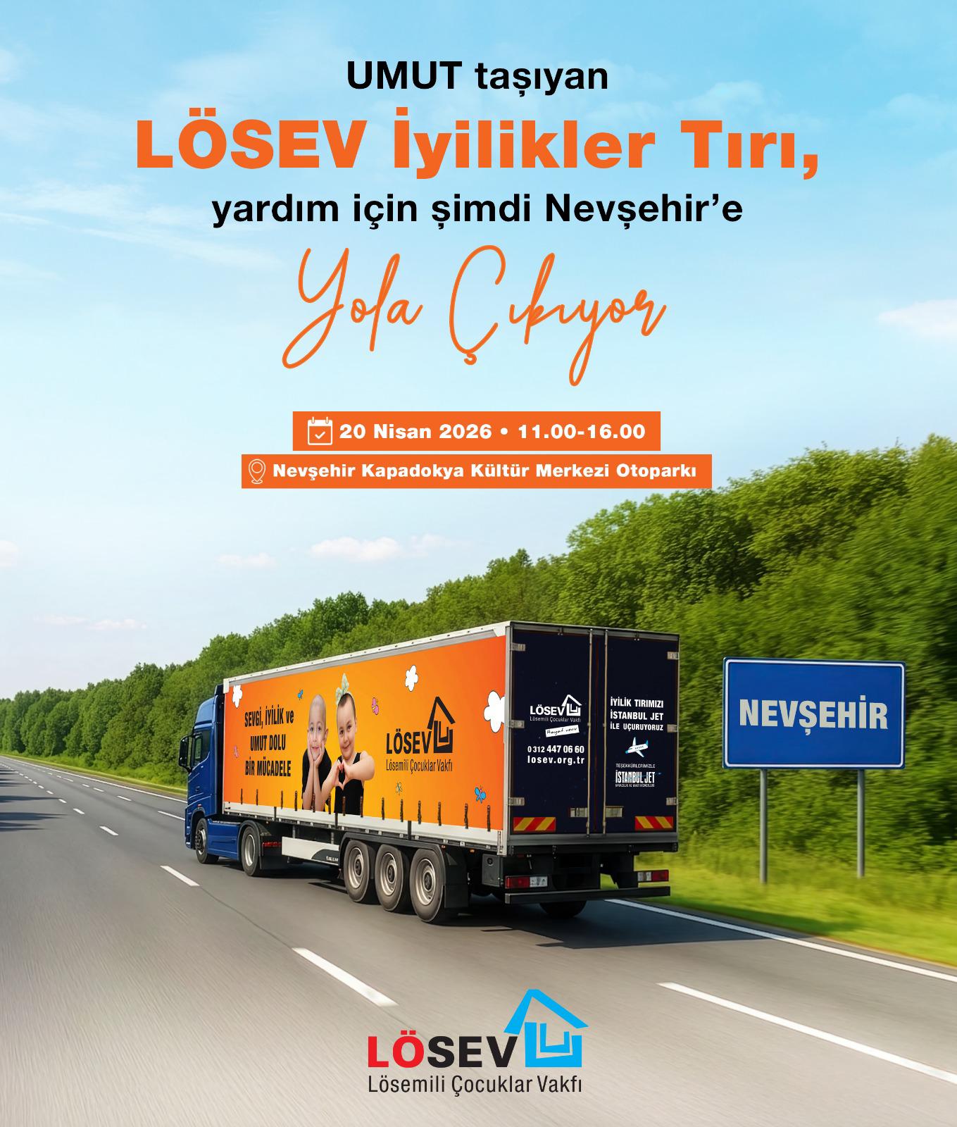 LÖSEV- Lösemili Çocuklar Sağlık ve Eğitim Vakfı, yardımlarını “İyilikler Tırı Projesi” kapsamında lösemi ve kanser ile mücadele eden ailelere ulaştırıyor. Ailelerin giyim, tekstil, gıda, et, kırtasiye, oyuncak, kuru gıda, temizlik malzemeleri gibi tüm temel ihtiyaçları karşılanıyor. İyilikler Tırı Nevşehir’deki ailelere yardımlarını ulaştırdı. Bölgedeki yardımlarına devam edecek olan İyilikler Tırı’nın sonraki durağı Sivas olacak.