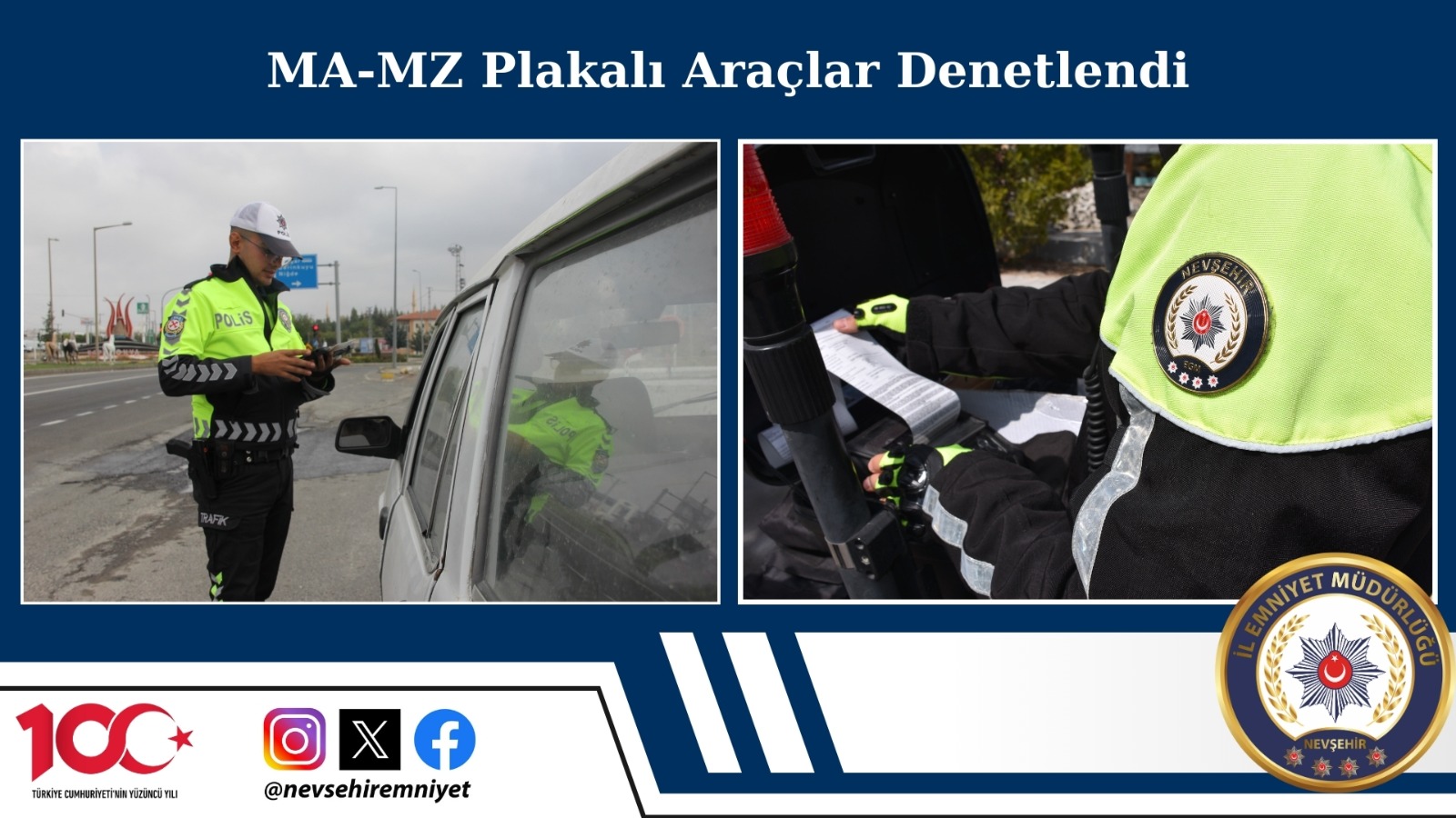 Trafik Tescil ve Denetleme Şube Müdürlüğü tarafından MA ve MZ plakalar denetlendi. Bölge Trafik Şube Müdürlüğü ve Topaklı Bölge Trafik Denetleme İstasyon Amirliği görevlilerimizin 4-10 Aralık tarihleri arasında yapmış oldukları, MA-MZ plakalı (Yabancı Taşıtlar Geçici Giriş Karnesi ve Geçici Giriş Belgesi ile Türkiye’ye yurt dışından gelen araçlar) araçların denetlenmesi faaliyetlerinde; toplamda 45 araç ve sürücüsü kontrol edilirken kusurlu görülen 22 araç sürücüsüne ve tescil plakalarına cezai işlem uygulandı ve 5 araç trafikten men edildi.