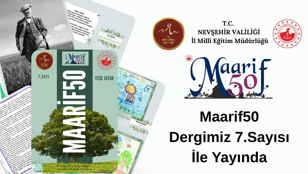 Türkiye Yüzyılı Maarif Modeli kapsamında hazırlanan Maarif50 dergisi, Nevşehir’de yürütülen eğitim faaliyetlerini yansıtan; okullarda öğrenci ve öğretmenlerin belirlenen temalar doğrultusunda hazırladıkları şiir, resim, karikatür, kompozisyon, anı ve hikâye gibi özgün çalışmalara yer veren eğitim ve kültür içerikli bir dergidir.