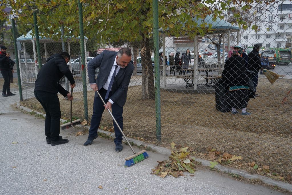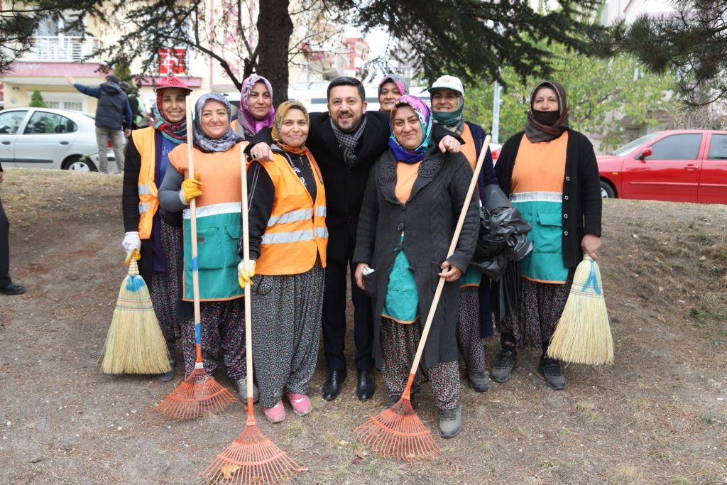 Başkan Arı’nın da kimi zaman elinde süpürge kimi zamanda bir iş makinesi üzerinde katıldığı çalışmalarla, park, cami bahçeleri, yol ve kaldırımlar süpürülürken boş arazilerdeki otlar temizlenerek molozlar kaldırıldı.