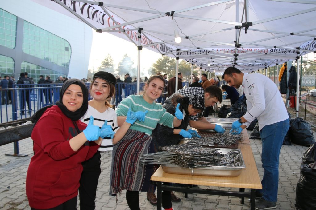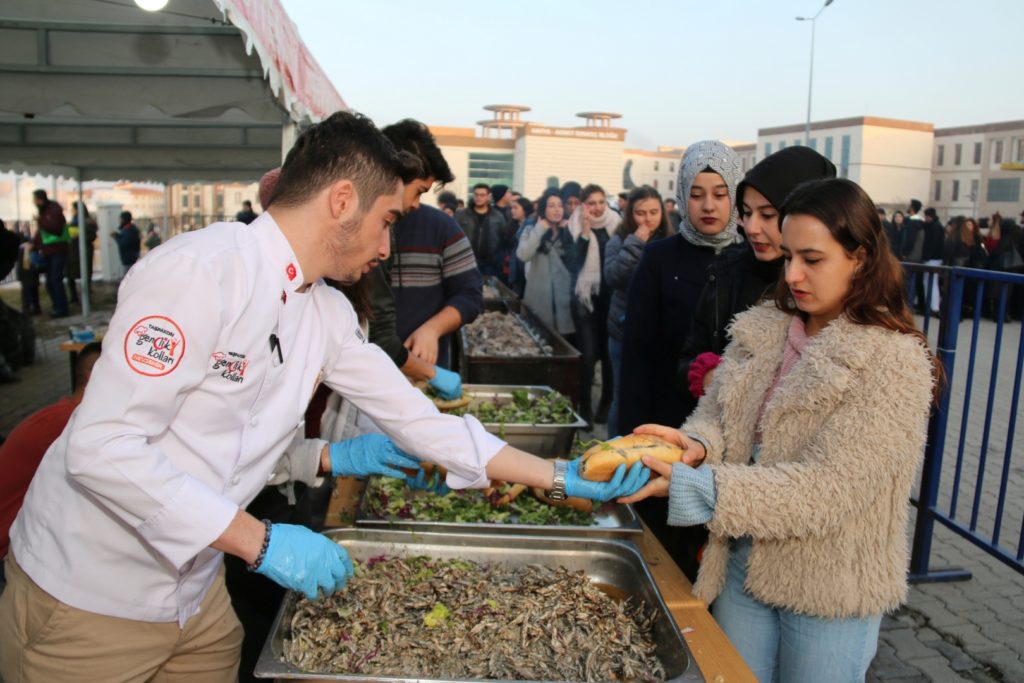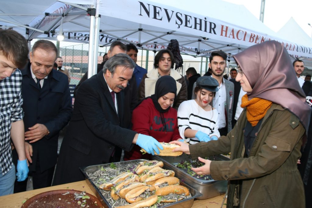Nevşehir Belediyesi ve Nevşehir Hacı Bektaş Veli Üniversitesi (NEVÜ) tarafından öğrencilere moral ve motivasyon sağlamak amacıyla düzenlenen “Mangalda Hamsi Şöleni’nde, Belediye Başkanı Rasim Arı tarafından öğrencilere yaklaşık 1 ton hamsi ikram edildi.