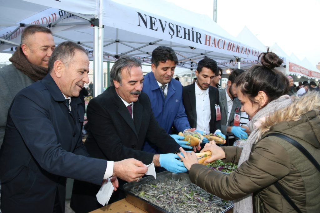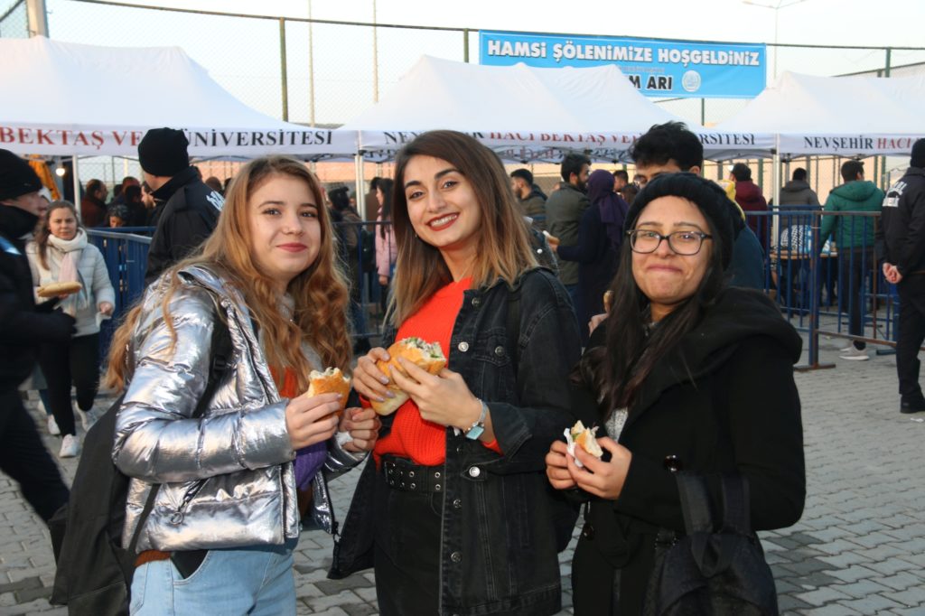 Şölen saatinde mangalla pişirilen hamsiler daha sonra NEVÜ Rektörü Prof. Dr. Mazhar Bağlı, Nevşehir Belediyesi Başkan Yardımcıları Ersan Erkut ve Bektaş Demir, Rektör Yardımcıları Prof. Dr. Erdoğan Çiçek ve Prof. Dr. Fatma Karipcin, Genel Sekreter Nihat Çavuşoğlu tarafından öğrencilere ve katılımcılara ikram edildi. Etkinlikte ayrıca Nevşehir Belediyesi İkram Çeşmesinden öğrencilere şerbet dağıtıldı.