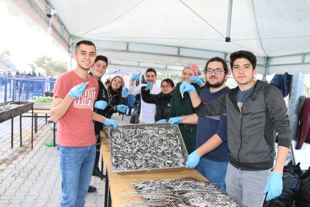 Mangalda pişirilen hamsilerden doyasıya yiyerek yakılan ateşlerin başında doyasıya eğlenen öğrenciler ve katılımcılar ayrıca, Karadeniz yöresine ait çalınan müzik eşliğinde halay çekip horon teptiler.