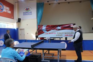 24 Kasım Öğretmenler Günü münasebetiyle Öğretmenler Arası Masa Tenisi turnuvası düzenlendi. Nevşehir İl Milli Eğitim Müdürü Yusuf Yazıcı’nın açılış maçıyla müsabakalara başlanırken Yazıcı yaptığı açıklamada öğretmenler günü nedeniyle yapılacak etkinliklerin çocuklara ve ülkemize hizmetkar olma yolunda birlikte yürümemiz adına önemli olduğunu vurgulayarak etkinliğin hazırlanmasında emeği geçen idarecilere, öğretmenlere ve katılım sağlayan herkese sağlık ve esenlik dileyerek teşekkür etti.