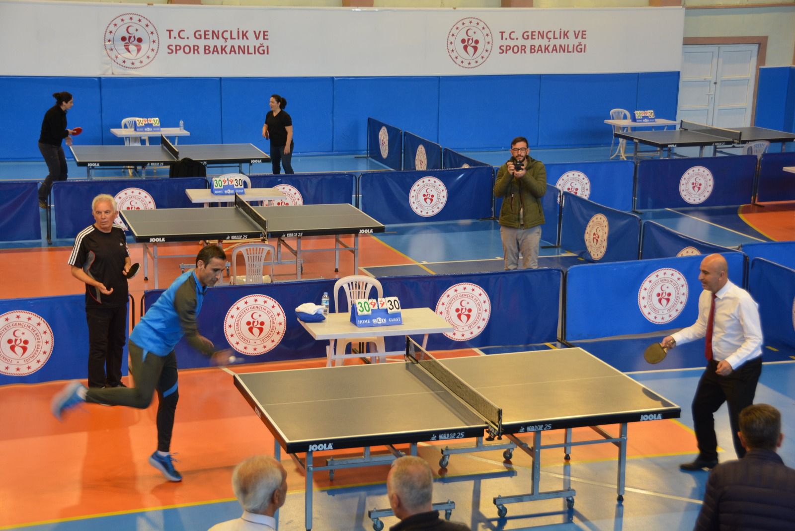 Müsabaka öncesi Masa Tenisi ve Türk sporuna verdiği hizmetlerinden dolayı Emekli Beden Eğitimi Öğretmeni Türkiye Masa Tenisi Federasyonu İl Hakemi Kazım Hamurişçi’ye İl Milli Eğitim Müdürü Memet Polat tarafından plaket takdimi yapıldı.