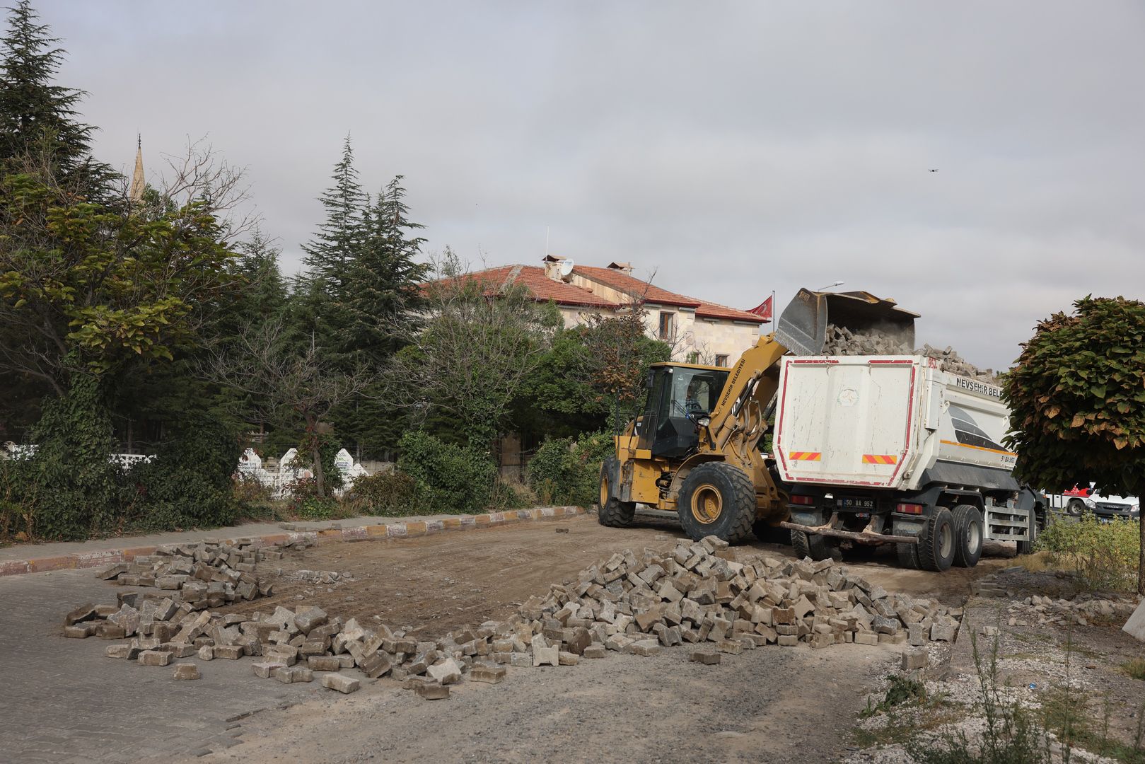 Şehir merkezinde özel halk otobüsü güzergahlarının tamamını sıcak asfalt konforu ile buluşturmayı hedefleyen Nevşehir Belediyesi, Mehmet Akif Ersoy Mahallesi’nde bir sokağı daha sıcak asfalt konforu ile buluşturacak.Bu kapsamda Nevşehir Belediyesi Fen İşleri Müdürlüğü ekipleri, Taşlıbel Mezarlığı girişindeki Mezarlıklar Müdürlüğü binası yanından başlayarak TOKİ 3. Etap Konutlarına uzanan 590. Sokak’ta yol söküm çalışmalarına başladı. Belediye ekipleri iş makineleri yardımı ile daha önce parke taşla kaplı yolda söküm çalışmalarını tamamladıktan sonra altyapı yenileme çalışmalarına başlayacak.