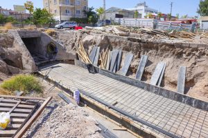 Nevşehir’deki tüm mahallelerde hayata geçirdiği yatırımlarla şehrin altyapı problemlerini birer birer çözüme kavuşturan Nevşehir Belediyesi, Mehmet Akif Ersoy Mahallesi İrşat Caddesi Çavuşoğlu Oto Galericiler Sitesi arkasında bulunan ve fiziki ömrünü tamamlayan menfezin yenilenmesi için çalışma başlattı. Nevşehir Belediyesi Su ve Kanalizasyon Müdürlüğü ekiplerince gerçekleştirilen çalışmalar çerçevesinde, daha önce taş duvar olan yaklaşık 100 metre uzunluğundaki menfez, betonarme yapılıyor.