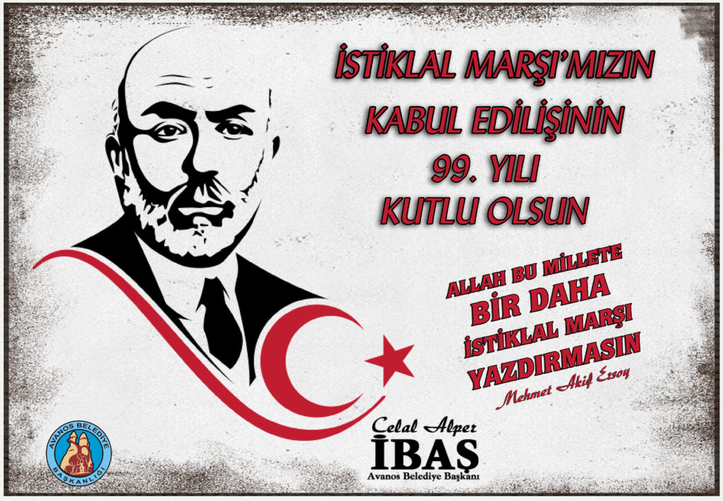 İstiklal Marşı’nın Türkiye Büyük Millet Meclisi tarafından ulusal marş olarak kabul edilişinin 99’uncu yıldönümünde, başta Yüce Önder Mustafa Kemal Atatürk olmak üzere, Kurtuluş Savaşı’nın tüm kahramanlarını, meclis üyelerini ve Kurutuluş Savaşımıza yürekli kalemiyle destek olan ve milletimize İstiklal Marşını armağan eden büyük şair Mehmet Akif Ersoy’u rahmet ve saygıyla anıyorum.”