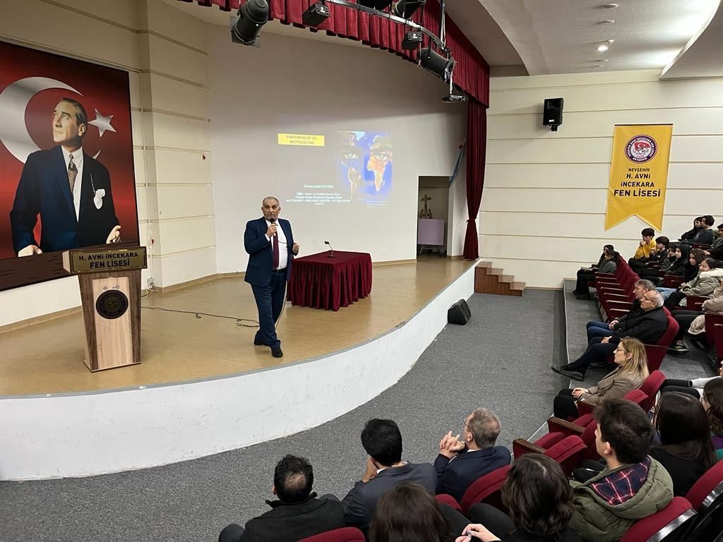 Milli Eğitim Bakanlığı Talim Terbiye Kurulu Daire Başkanı Mehmet Baki ÖZTÜRK Nevşehir’de liseleri ziyaret etti. Nevşehir Anadolu Lisesi, H. Avni İncekara Fen Lisesi, Diriliş Kız Anadolu İmam Hatip Lisesi ve Recep Tayyip Erdoğan Anadolu İmam Hatip Lisesinde öğrencilere konferans verdi. Sivil toplum kuruluşlarının daveti ve İl Milli Eğitim Müdürlüğü organizesi ile İlimizde bulunan Mehmet Baki ÖZTÜRK öğrencilere; akıl, bilgi, inanç ve irade bağlamında başarılı olmanın yollarını ve motivasyon ile tarih bilinci, insani değerler, özgün değerlerimiz, kültürümüz ile Çanakkale Savaşları, Kurtuluş Savaşı, Gazze ve Kudüs konularında yaşanılan süreçler hakkında bilgiler verdi. Bu bağlamda Kudüs ve Gazze’nin önemini vurgulayarak tarih ve tarih bilincinin gerekliliği üzerinde durdu. Öğrencilerin ilgi ile izlediği konferansa; Nevşehir Anadolu Lisesinde 146, H. Avni İncekara Fen Lisesinde 220, Diriliş Kız Anadolu İmam Hatip Lisesinde 243 ve Recep Tayyip Erdoğan Anadolu İmam Hatip Lisesinde 280 öğrenci iştirak etti.