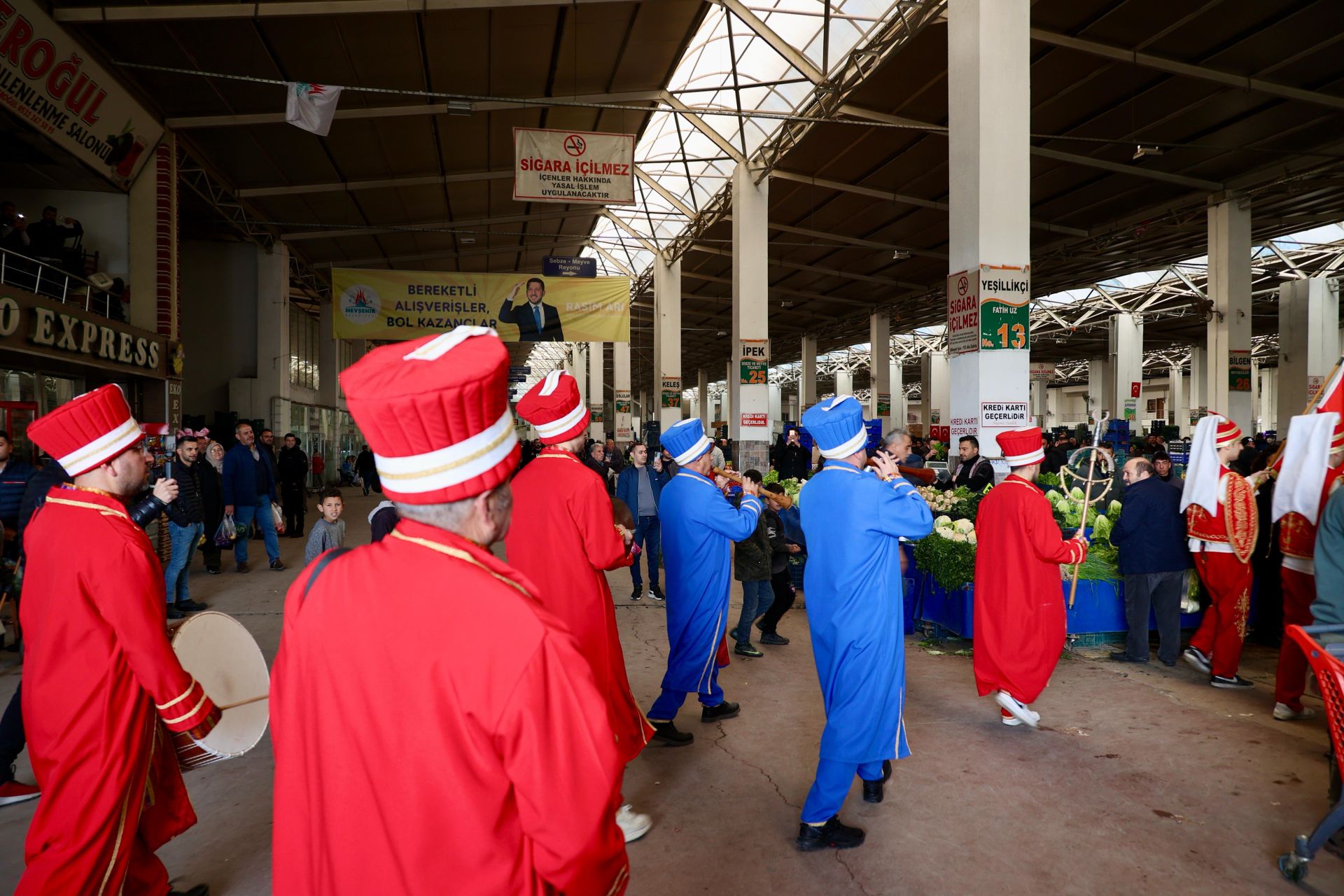 Nevşehir Belediyesi tarafından pazaryerinde yapılan mehter eşliğinde ki yürüyüş bir farkındalık oluşturarak bayram öncesi Nevşehirli vatandaşları gülümsetti. Çalınan marşların ardından pazaryerinde toplu iftar yapan Nevşehirli Pazarcılar müşteriler çok memnun kaldı bizde pazarcılar olarak çok memnun kaldık, Belediye Başkanı Rasim Arı’ya çok teşekkür ediyoruz açıklaması yaptılar.
