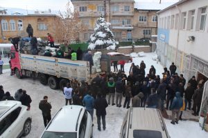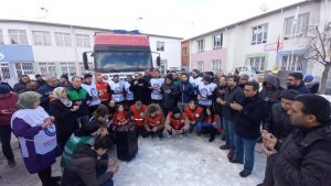 Bebek bezi, rulo havlu ve tuvalet kağıdı, ıslak mendil, yorgan, battaniye, yastık, elektrikli battaniye, yorgan, bebek yatağı, elektrikli ısıtıcı, kışlık giyim eşyaları ve hijyenik ped’lerin yer aldığı yardım malzemeleri okunan duaların ardından Kilis’e uğurlandı.