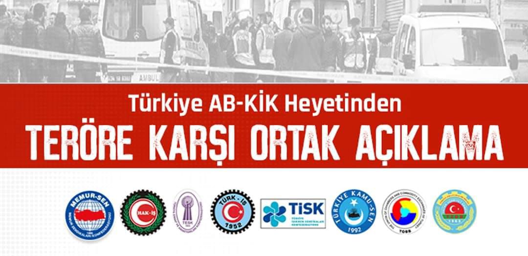 MEMUR-SEN, HAK-İŞ, TESK, TÜRK-İŞ, TİSK, Türkiye KAMU-SEN, TOBB ve TZOB’un yer aldığı Türkiye-AB KİK Heyeti’nin açıklamasında şu ifadelere yer verildi: