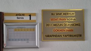Okulun 2011 yılı Servis Bölümü mezunlarından Gökmen İnan tarafından Servis Atelyelerinin donanımına büyük katkı sağlandı.