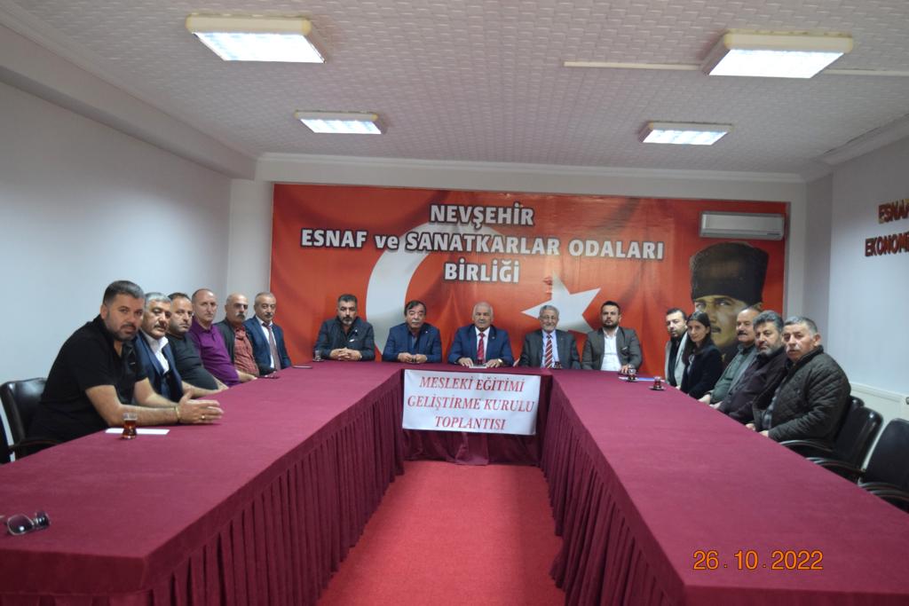 Nevşehir Esnaf ve Sanatkarlar Odaları Birliği Mesleki Eğitimi Geliştirme Kurulu Toplantısı Birlik Başkanı Mehmet Pınarbaşı başkanlığında bağlı Oda Başkanlarının katılımı ile Birlik Hizmet Binası 1.Kat Toplantı Salonunda gerçekleştirildi.