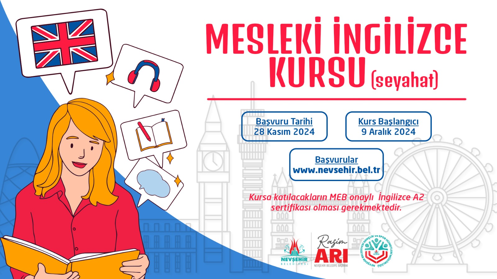 Nevşehir Belediyesi Gençlik ve Spor Hizmetleri Müdürlüğü bünyesinde Seyahat içerikli Mesleki İngilizce kursu açılacak.