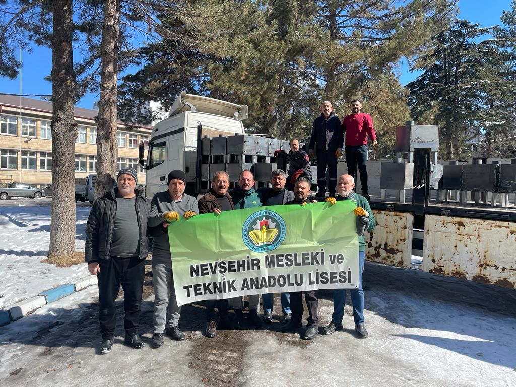 Nevşehir Valiliği himayesinde İl Milli Eğitim Müdürlüğü koordinesinde deprem bölgesindeki vatandaşlar için, İlimiz Nevşehir Mesleki ve Teknik Anadolu Lisesi, Mesleki Eğitim Merkezi ve Acıgöl 15 Temmuz Mesleki ve Teknik Anadolu Liseleri tarafından hazırlanan 350 adet soba ve Ekipmanlar tır ile Adıyaman’ a ulaştırılmak üzere yola çıktı.