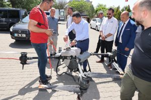 Burada bir süre drone mezarlık bölgesine gül suyu sıkılmasını izleyen Arı, uygulamanın Türkiye’de ilk kez Nevşehir’de gerçekleştirildiğini belirterek bu konuda kendilerine destek veren girişimcilere teşekkür etti.