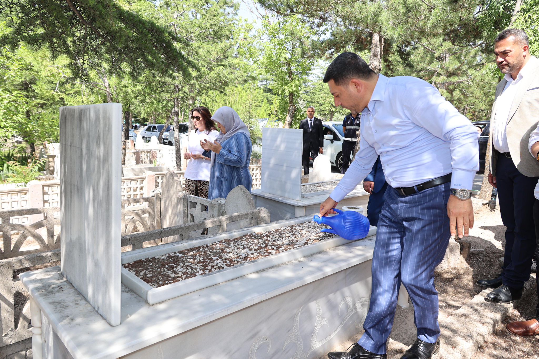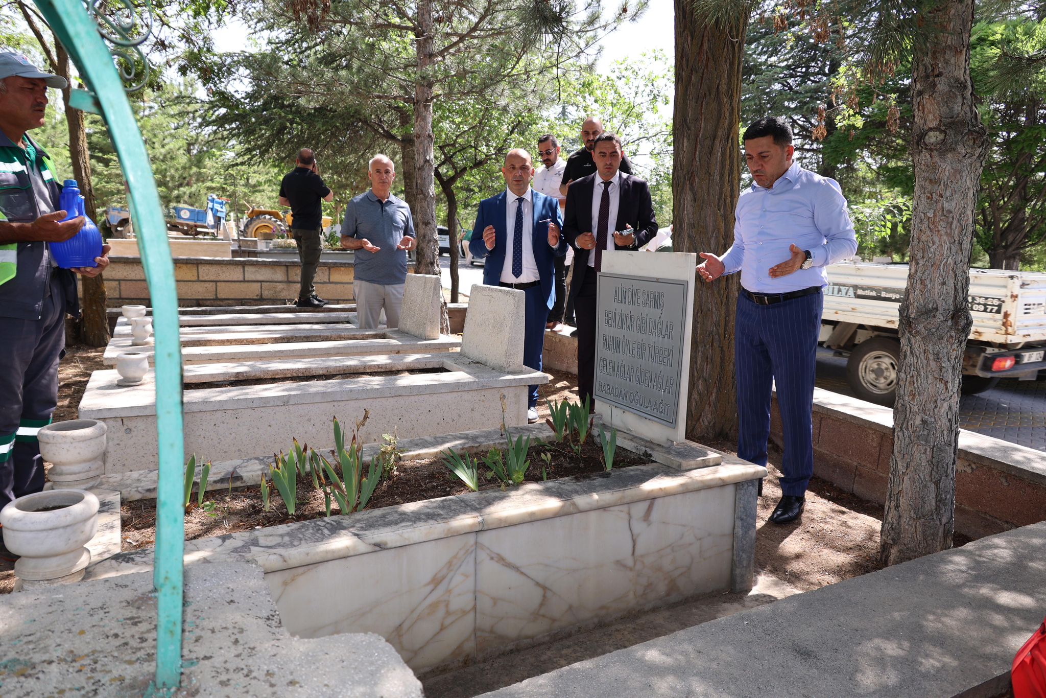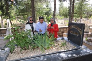 Arı, ardından mezar ziyaretine gelen vatandaşlarla da bayramlaşarak çam fidanı hediye ettikten sonra Nevşehir Eski Belediye Başkanlarından merhum Nejdet Ersan ve Seyit Mehmet Akbay’ın İle Abdullah Çatlı’nın kabirlerini ziyaret ederek dualar okudu.