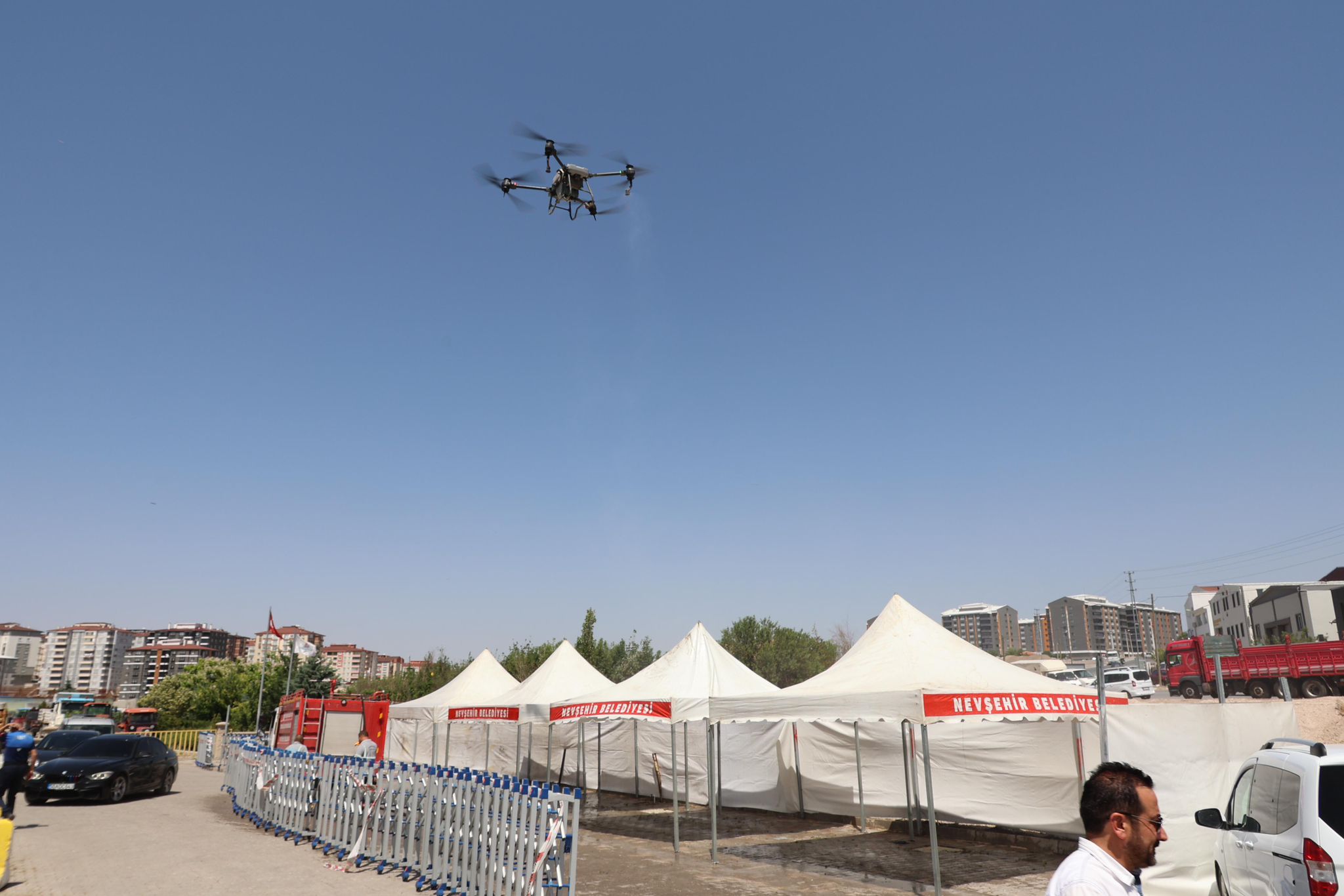 Nevşehir Belediyesi tarafından Kurban Bayramı öncesinde mezarlıklara drone ile gül suyu sıkıldı. Türkiye’de ilk kez gerçekleştirilen uygulamayı Belediye başkanı Rasim Arı’da izledi.