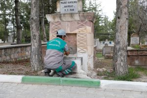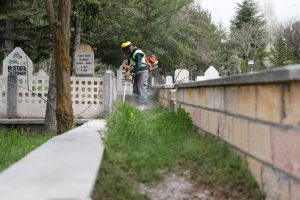 Yıl boyu rutin olarak M.Akif Ersoy Mahallesi’nde bulunan Kaldırım Mezarlığı ve Güzelyurt Mahallesi Zübeyde Hanım Caddesinde bulunan Taşlıbel Mezarlığının temizlik ve bakımını yapan ekipler, bayramın gelişi nedeniyle çalışmalarını hızlandırdı. Mezarlıklarda; bir yandan budama işlemleri yapılırken, diğer yandan ilaçlama ve yabani ot ve bitkilerin kesim işleri sürüyor.