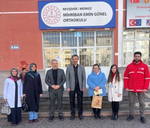Filistin’de yaşanan insanlık dramına duyarsız kalmayan Mihriban Emin Günel Ortaokulu Müdürü ve Memursen Nevşehir İl Başkanı Harun ÖCAL Okulun Değerler Kulübü üyesi öğrencileri yardım kampanyası düzenleyerek, okul idaresi, öğretmen, öğrenci ve velilerin destekleriyle topladıkları nakdi bağışı Okul Müdürü Harun ÖCAL aracılığı ile Kızılay Nevşehir Şube başkanı Ercan CİVELEK ‘e Gazze için İnsani yardım malzemesi gönderilmesi amacıyla makbuz karşılığında teslim etti.