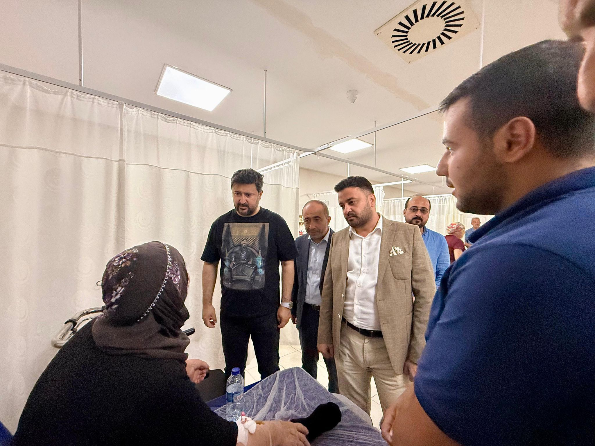 Hastane ziyareti boyunca hasta yakınlarıyla sohbet eden heyet, sağlık çalışanlarına da özverili hizmetlerinden dolayı teşekkür etti.