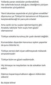 Son olarak sokakların ve meydanların sahipsiz olmadığını vurgulayan Çalışkan, “Hiç kimseye ne meydanları ne de sokakları terk ederiz. Dalımızı koparmaya kalkanın, ağacı kökünden sökeriz! Bu böyle biline!” ifadeleriyle mesajını net bir şekilde ortaya koydu.