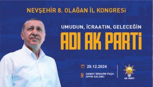 AK Parti Lideri Cumhurbaşkanı Recep Tayyip Erdoğan’ın da konferans ile canlı olarak bağlanacağı kongre saati 28 Aralık Cumartesi günü 13:30 da Nevşehir Damat İbrahim Paşa Kapalı Spor Salonunda gerçekleştirilecek.