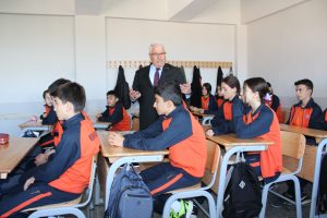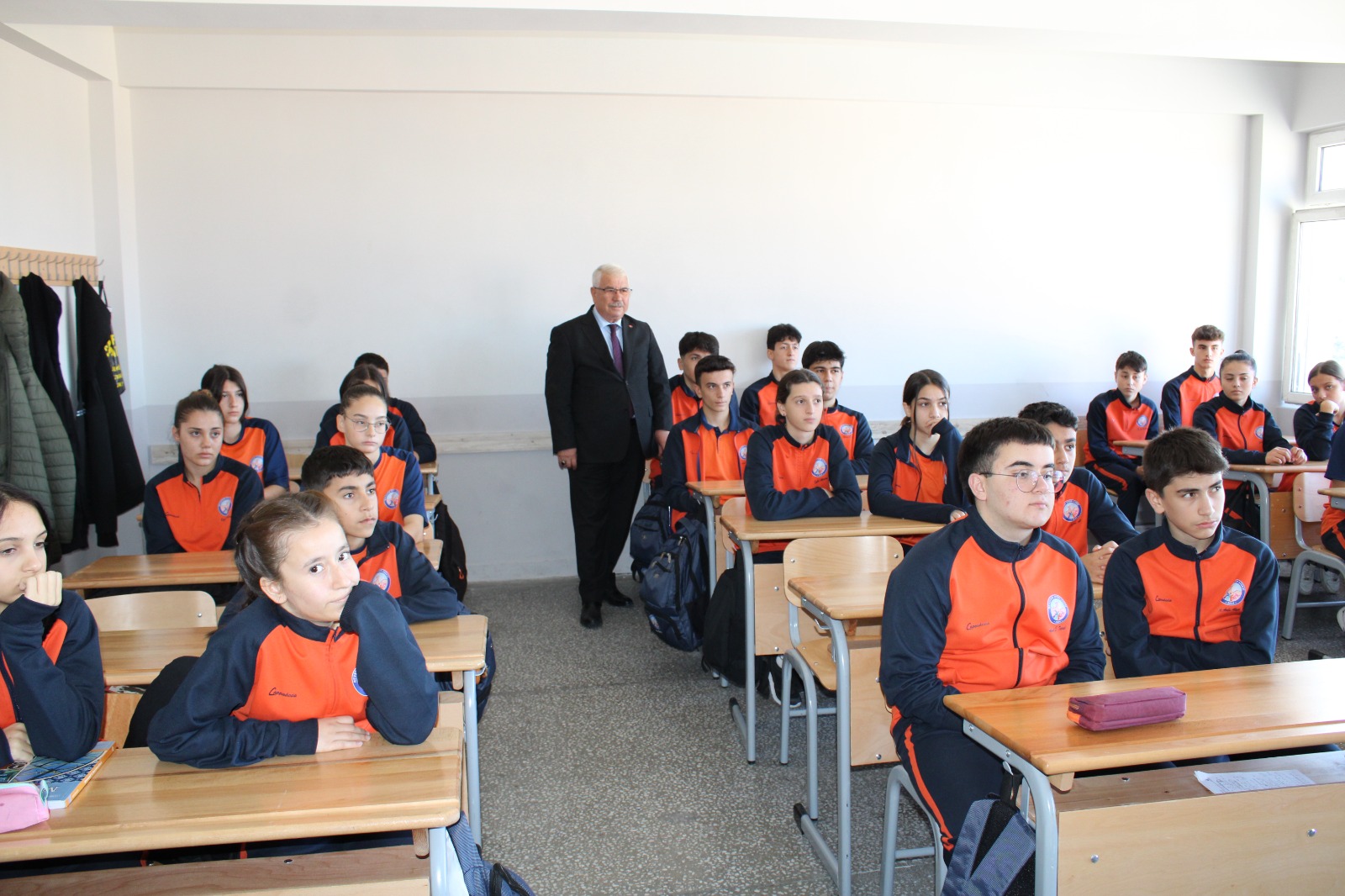 Okulda incelemelerde bulunan ve öğrencilerle de bir araya gelen İl Müdürü, sporun öğrenciler için önemine değinerek tavsiyelerde bulundu.