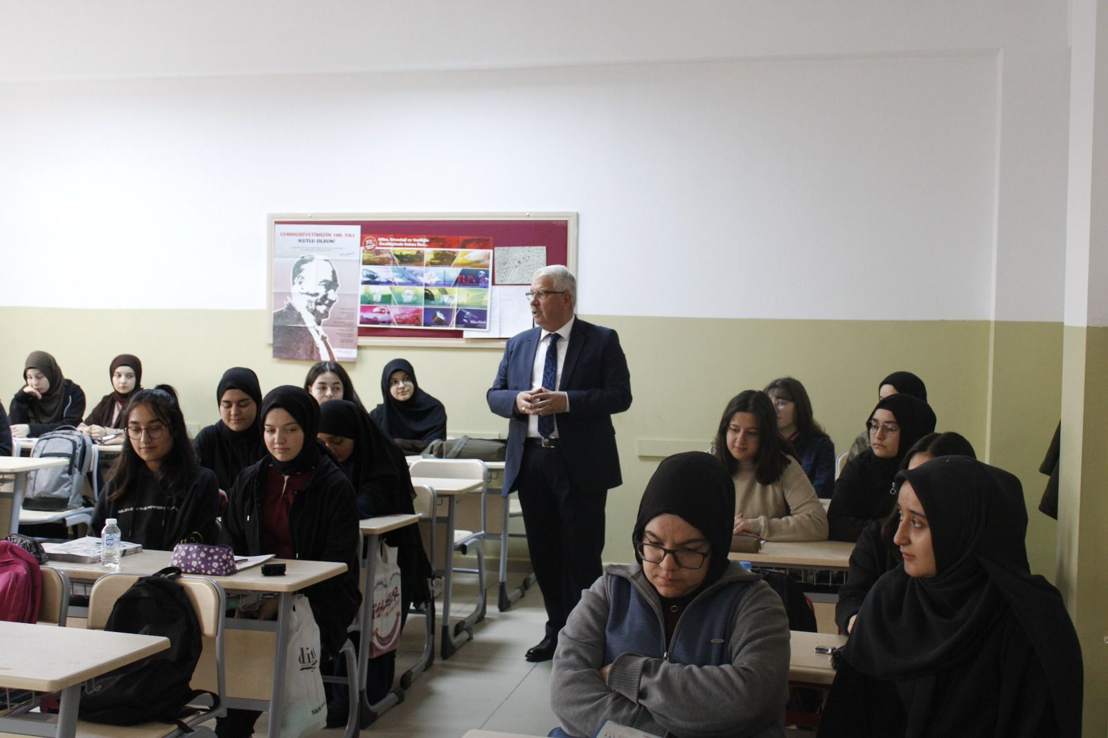 İl Milli Eğitim Müdürü Yusuf YAZICI, Diriliş Kız Anadolu İmam Hatip Lisesini ziyaret etti. Okul müdürü Ali Rıza ÖRTLEK’ten bilgi alan İl Müdürü, öğrencilerle gelecek planlarına yönelik sohbet etti ve ilimizde uygulanan projeler ile etkili ve verimli ders çalışmaya yönelik bilgiler aktararak öğrencilerin görüş ve önerilerini aldı. Öğretmenler odasına da misafir olan Sayın YAZICI, idareci ve öğretmenlerle bir araya geldi.