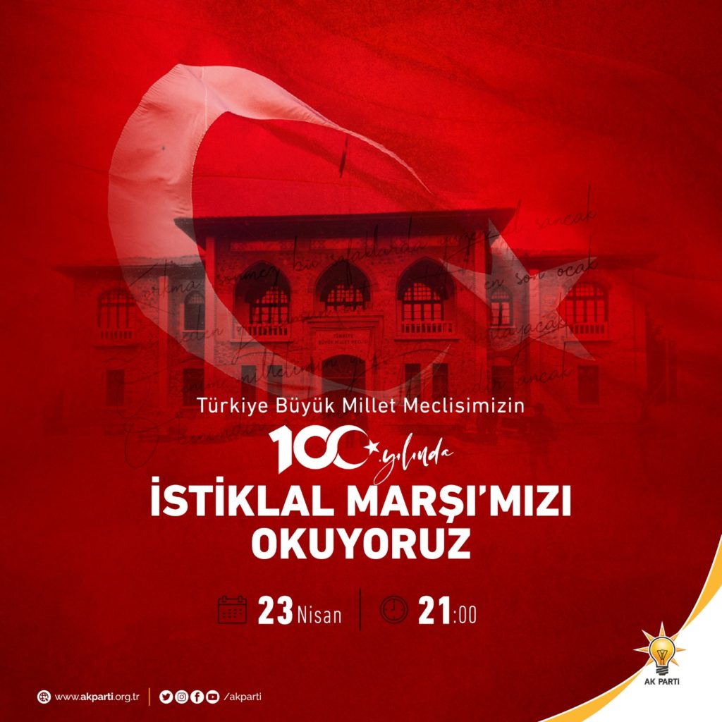 Sağlıklı yarınlara hep birlikte ulaşmak için bu yıl evlerimizdeki etkinliğimizi 23 Nisan akşamı saat 21.00’de İstiklal Marşı’mızı okuyarak taçlandıracağız ve aziz milletimizi de hep birlikte İstiklal Marşı’mızı okumaya davet ediyorum.