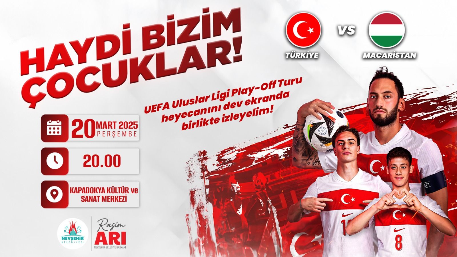 Nevşehir Belediyesi, UEFA Uluslar Ligi Play-Off turu müsabakası olan Türkiye – Macaristan maçı için dev ekran kuracak. Nevşehirliler, Kapadokya Kültür ve Sanat Merkezi’nde dev ekran karşısında hep birlikte maç izleyerek ay yıldızlı takımımıza destek verecek.