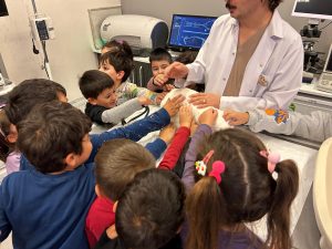 Altınyıldız Anaokulu öğrencileri ‘Dünya Hayvanları Koruma Günü’ etkinlikleri kapsamında, TERAPİ VETERİNER KLİNİĞİ’ni ziyaret ederek canlılar ve veteriner hekimlik konusunda bilgilendirildiler. Minik öğrenciler, bir kediye dokunmanın heyecanını yaşarken, onlara tedavi yöntemleri hakkında bilgilendirme yapıldı.