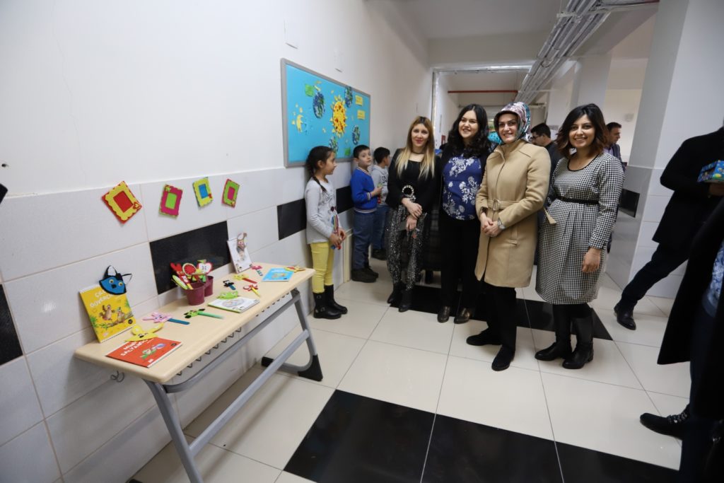 Sergi açılışının ardından okul öğrencilerinin yaptıkları el sanatları ürünlerini inceleyen Melek Arı, öğrencileri ve okul öğretmenlerini tebrik etti. Arı burada öğrencilere çeşitli hediyeler dağıttı.