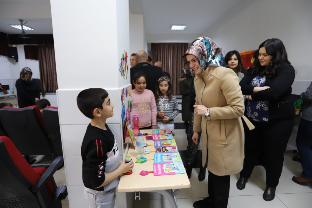 Serginin açılışına katılan Belediye Başkanı Rasim Arı’nın eşi Melek Arı, öğrencilere çeşitli hediyeler dağıttı.