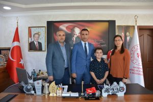 Ziyarette İl Müdürü Özdemir ile sohbet eden Yusuf Sertelen’ e öğretmeni Pelin Eren, annesi ve Okul Müdürü Serhat Uluer’de eşlik etti.