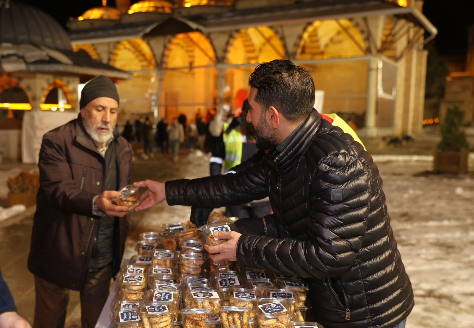 Kandil simitleri ve şerbet, Nevşehir Belediyesi görevlileri tarafından camilerin önüne kurulan stantlardan vatandaşlara ikram edildi.