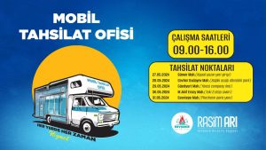 Mobil Tahsilat Ofisi, 27 Mayıs Pazartesi günü Sümer Mahallesi Kapalı Pazar yeri girişinde, 28 Mayıs Salı günü Cevher Dudayev Mahallesi Sağlık Ocağı altındaki parkta, 29 Mayıs Çarşamba günü Güzelyurt Mahallesi Yüncü Company önünde, 30 Mayıs Perşembe günü Mehmet Akif Ersoy Mahallesi TOKİ 2. Etap’ta ve 31 Mayıs Cuma günü ise Esentepe Mahallesi Pforzheim Parkı yanında olacak.