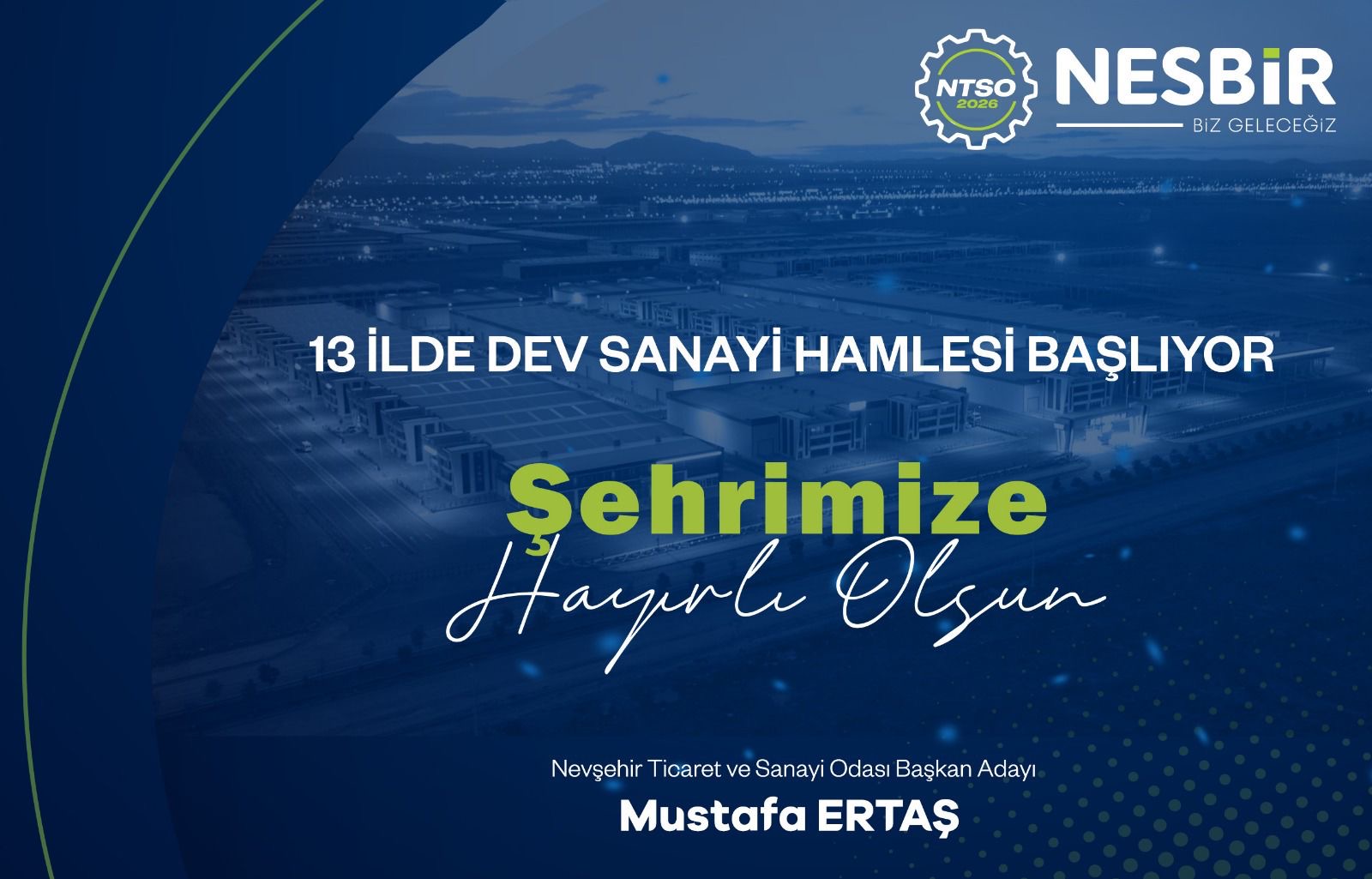 Nevşehir Ticaret ve Sanayi Odası (NTSO) Başkan Adayı Mustafa Ertaş, Sanayi ve Teknoloji Bakanı Mehmet Fatih Kacır tarafından açıklananı ve Resmî Gazete’de ilan edilen yeni sanayi yatırım alanları kararına ilişkin hayırlı olsun mesajı yayımladı.