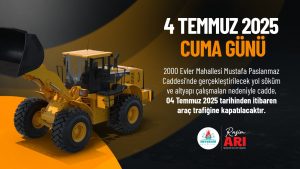 04 Temmuz 2025 Cuma günü saat 08.00’de 2000 Evler Mahallesi Mustafa Paslanmaz Caddesi’nde yol söküm ve altyapı çalışması yapılacağından söz konusu alanın tamamına araç park edilmemesi ifade edildi.