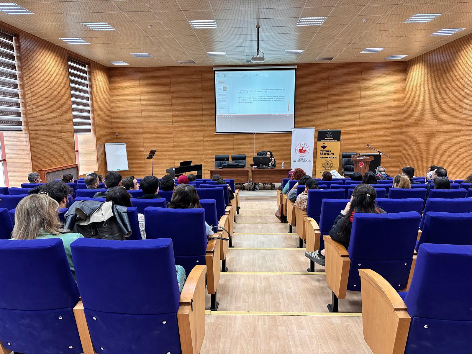 Nevşehir Öğretmen Akademileri Müzik Akademisi’nde, Nevşehir Hacı Bektaş Veli Üniversitesi Eğitim Fakültesi Güzel Sanatlar Eğitimi Bölümü Müzik Eğitimi Anabilim Dalı Öğretim Üyesi Dr. Özge Kaya ile bir araya gelindi. NEVÜ Şehit Eren Bülbül Konferans Salonunda gerçekleştirilen programa; İl Milli Eğitim Şube Müdürü Feyyaz Solak, yöneticiler ve öğretmenler katıldı.